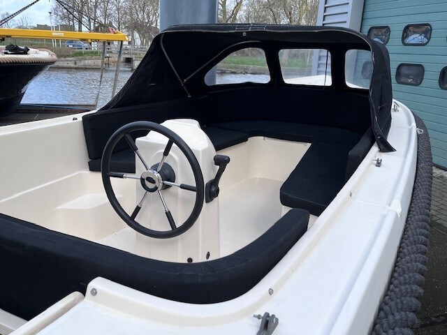 Nieuwe Binnen Admiral 585 met Tohatsu 15 pk motor. Ruime tender model inclusief zonnedek en voorzien van nieuwe anti fouling laag.